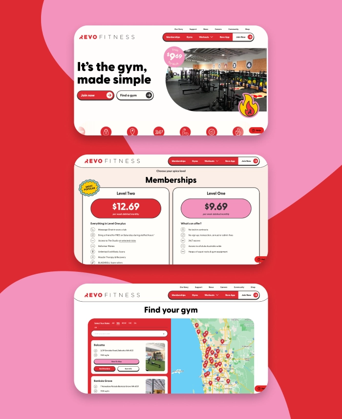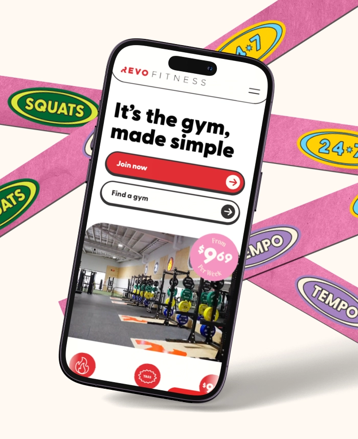 A vibrant and elevated website redesign for Australia’s fastest-growing gym, Revo Fitness.